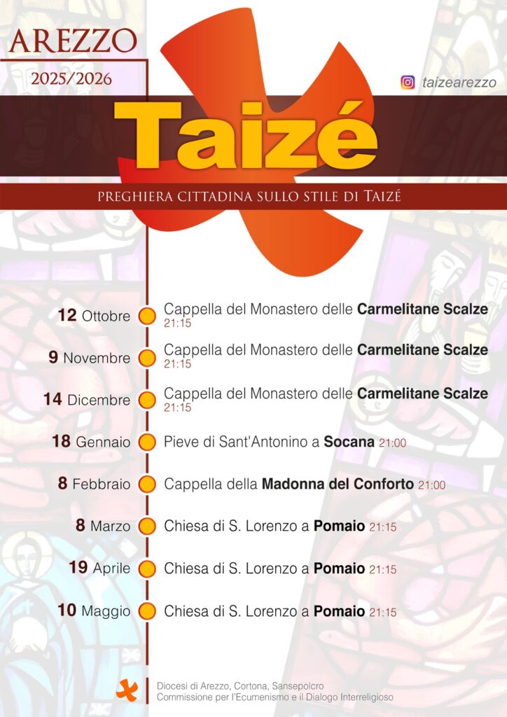 La Comunità monastica ed ecumenica di Taizé non ha mai voluto creare attorno a sé un movimento, ma desidera stimolare i giovani ad impegnarsi nelle proprie Chiese locali, a divenire creatori di pace e di fiducia nella propria città, quartiere, parrocchia. Tuttavia ad Arezzo come in molte città italiane e del mondo, numerose persone si organizzano assieme per prendere parte agli incontri che la Comunità organizza sulla stessa collina di Taizé o, a fine anno, in una grande città europea, come tappe di un “Pellegrinaggio di fiducia sulla Terra”. Inoltre, anche ad Arezzo, è nata da numerosi anni una preghiera regolare cittadina animata con i canti di Taizé.